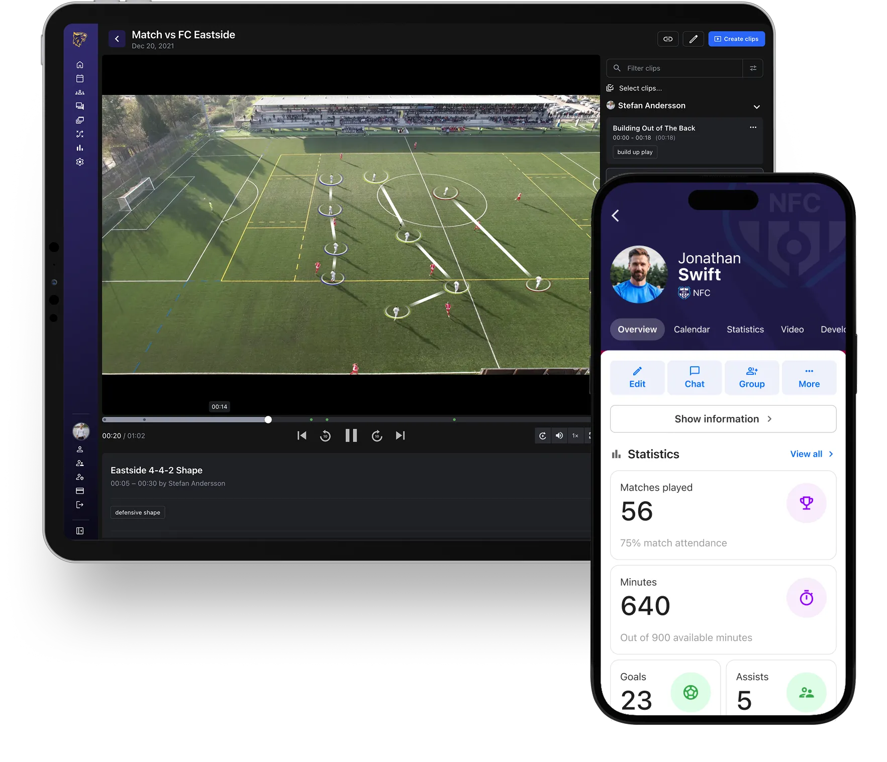 360Player helps coaches plan sessions, track development, and share content with players and parents.